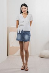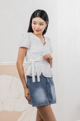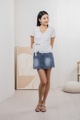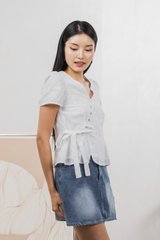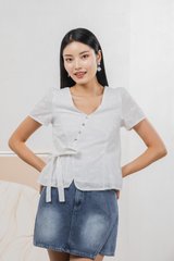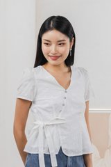 Raye Ribbon Faux Wrap Top In White