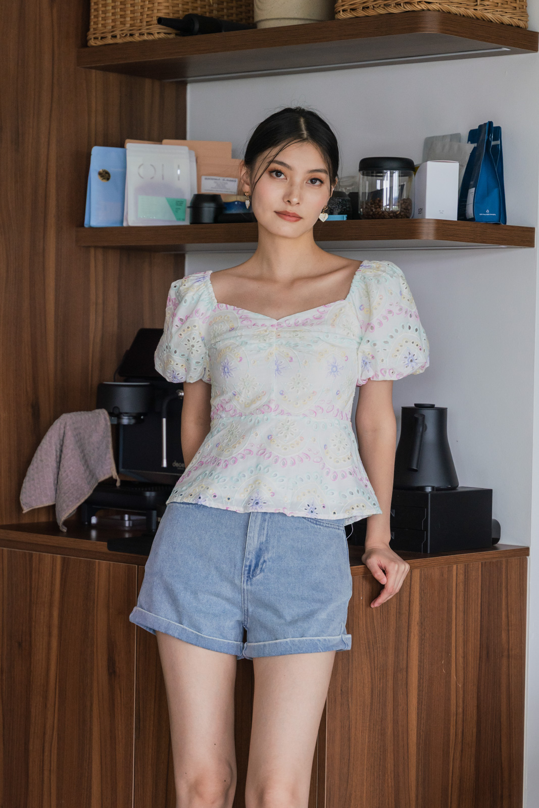 Rhys Rainbow Eyelet Sweetheart Top in Rainbow
