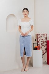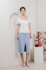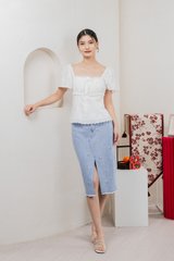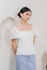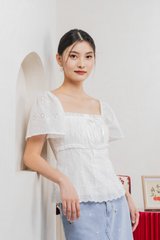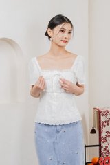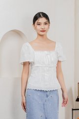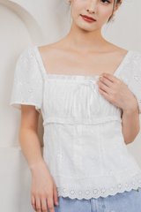 Simplicite Eyelet Ribbonette Top In White