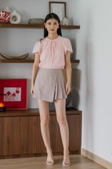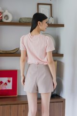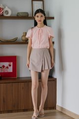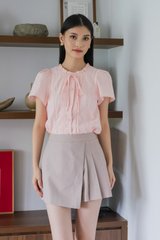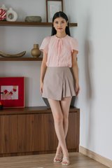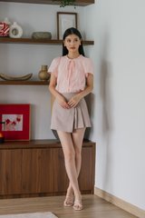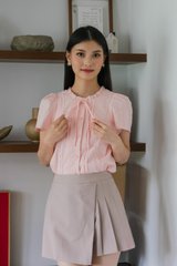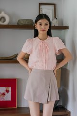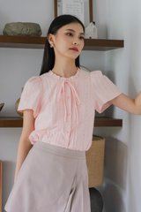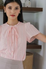Vanda Swiss Dot Ribbon Top In Soft Pink