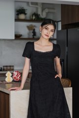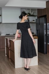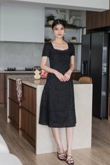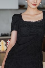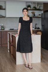 Elora Eyelet Crochet Midi Dress In Black