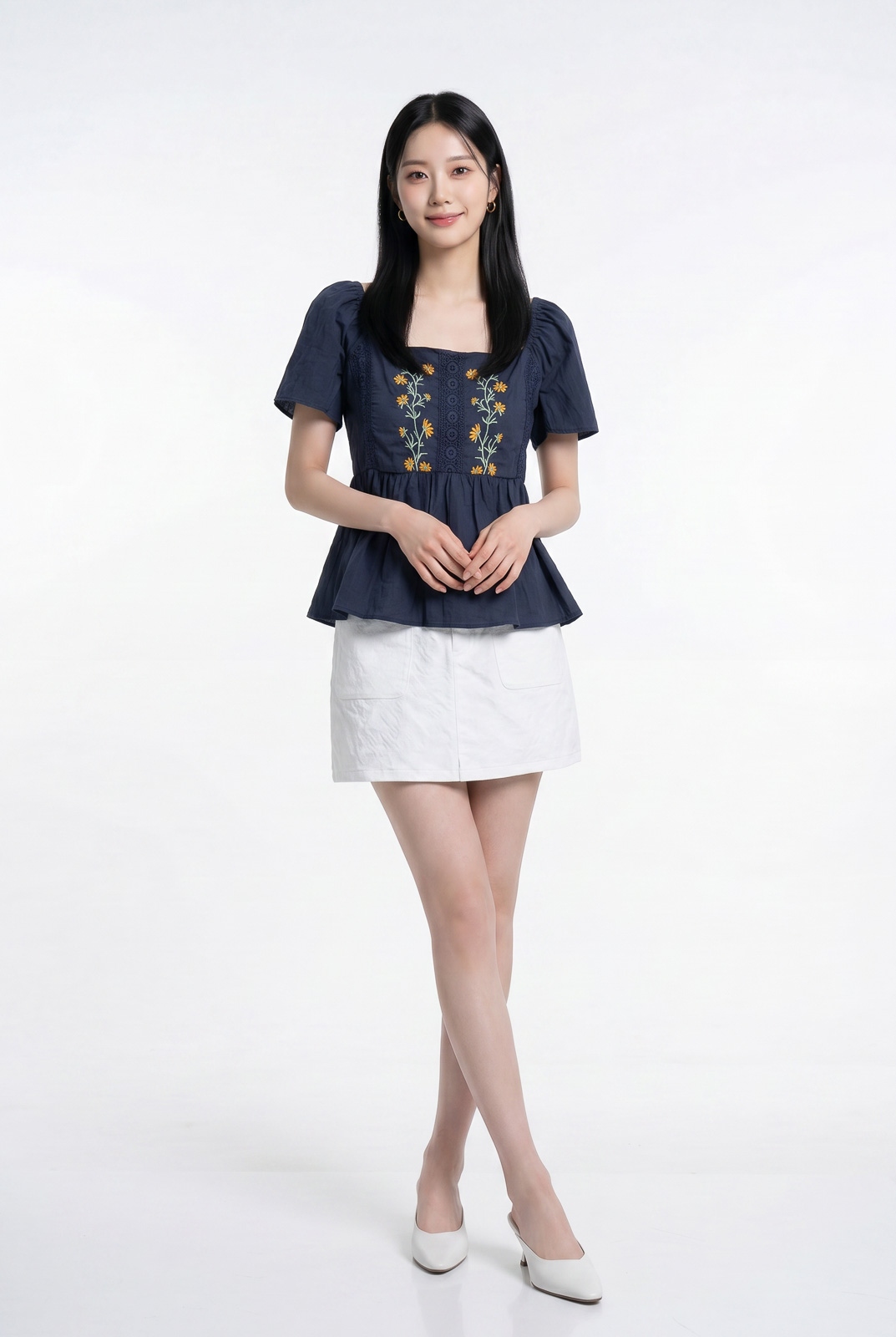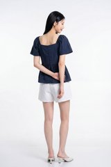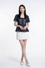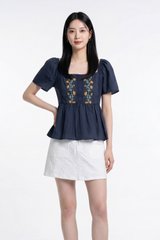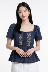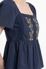 Adeline Embroidered Floral Top in Navy
