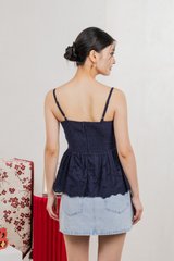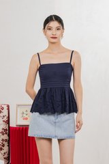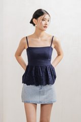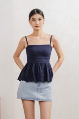 Juni Pleated Eyelet Camisole Top In Navy