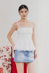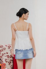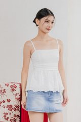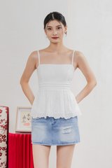Juni Pleated Eyelet Camisole Top In White